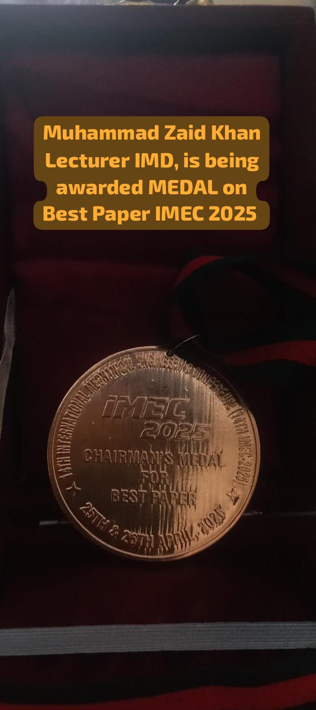 Industrial and Manufacturing Engineering education has become pivotal in establishing a competitive posture across the entire spectrum of Metal working and Manufactured parts’ industry in Pakistan. Both the reality and perception of domestic production points to the need for a stronger, more productive manufacturing industry in this country producing high quality parts at low cost. In view of the fast changing technology and scenario the University started this separate Department. Industrial and Manufacturing Engineering spans a broad spectrum of engineering topics such as: Computer Aided Design (CAD); Computer Aided Manufacturing (CAM); Numerical Control (NC); Computer Integrated Manufacturing (CIM); Flexible Manufacturing System (FMS); Robotics & Automation; Product Design; Tools and Machines; Manufacturing Processes; Quality Control; Production and Inventory Control; and Economics Analysis. This Department was initially started under the auspices of Mechanical Engineering Department in October 1999 and started as a separate Department in October 2000 with the name of Industrial & Manufacturing Engineering Department.